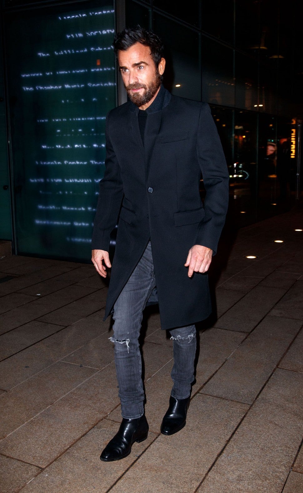 For the occasion, Theroux -- whose beard has grown in nicely -- rocked a black T-shirt and suit jacket with dark jeans, and was all smiles while hanging out with his pals