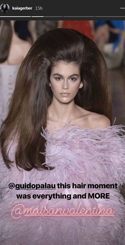 Created by legendary hairstylist Guido Palau, with assistance from Redken colorist Josh Wood, the voluminous, '60s-inspired bouffant was actually a wig, dyed to match Gerber's natural hair hue. Gerber -- the daughter of businessman Rande Gerber and supermodel Cindy Crawford -- was one of six models who rocked a variation of the intricate 'do during the show.
