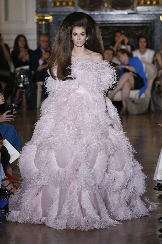 "The big hair was inspired by [Valentino creative director] Pierpaolo Piccioli," Palau told Harper's Bazaar. "He wanted to have some extravagance in the hair, and we were looking at old '60s Diana Vreeland Harper's Bazaar and Avedon shoots. These women who had these glorious kind of dream hair. They wanted a fantasy about hair that women dream about. It was couture hair."