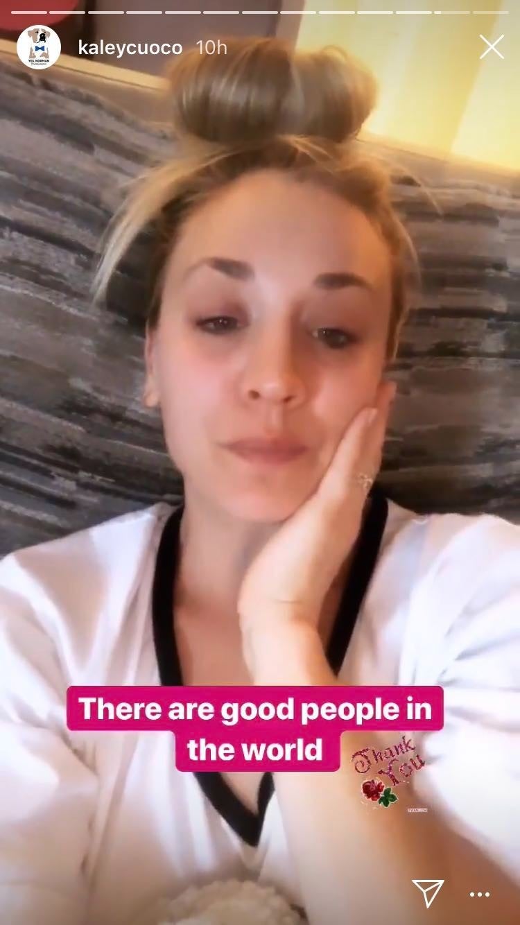 "So I have had the strangest week. It's been very up and down, very emotional to be honest. Probably just coming to the end of the show and, I don't know, lots of other things," she said in the video, referring to the upcoming series finale of CBS' The Big Bang Theory after 12 seasons. "But a really sweet thing happened to me a few days ago and I had to share."