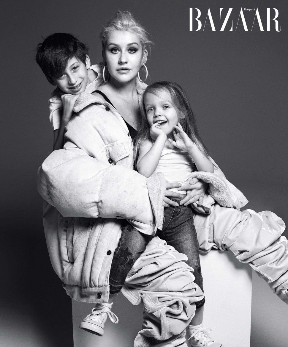 Aguilera also sits for the shoot alongside her precocious 10-year-old son, Max, and her 3-year-old daughter, Summer Rain. The "Fall in Line" singer stays stoic for the photo, while her adorable kids smile brightly in her embrace.