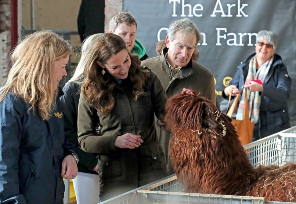 While at The Ark Open Farm in Newtownards, the mom of three met with local children and parents and had lots of fun with the animals. Kate helped some kids bottle feed a baby lamb, and had some funny interactions with a large alpaca.