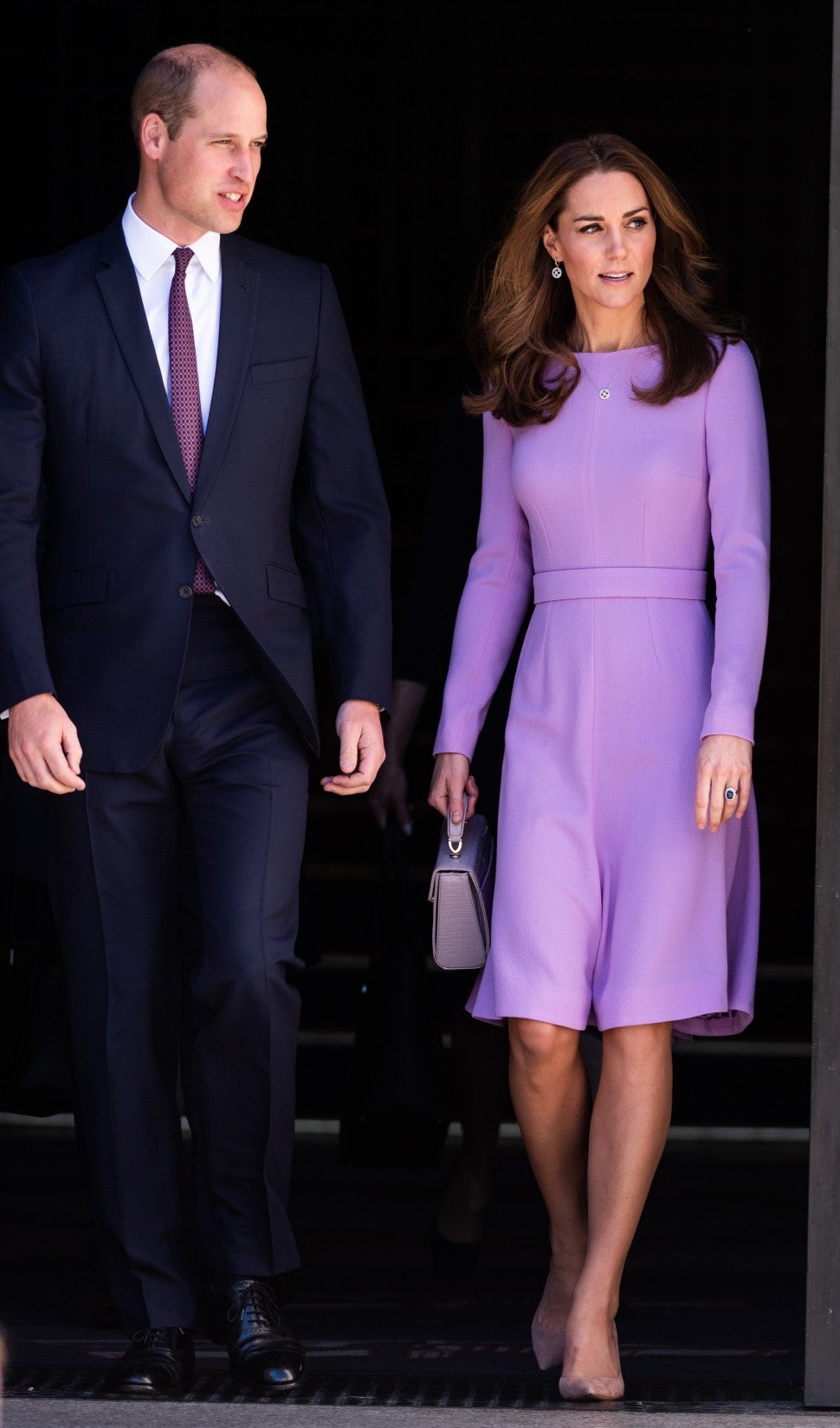 Notice Prince William also wore an identical navy blue suit, complete with a purple print tie that coordinated with his wife's frock. How cute!