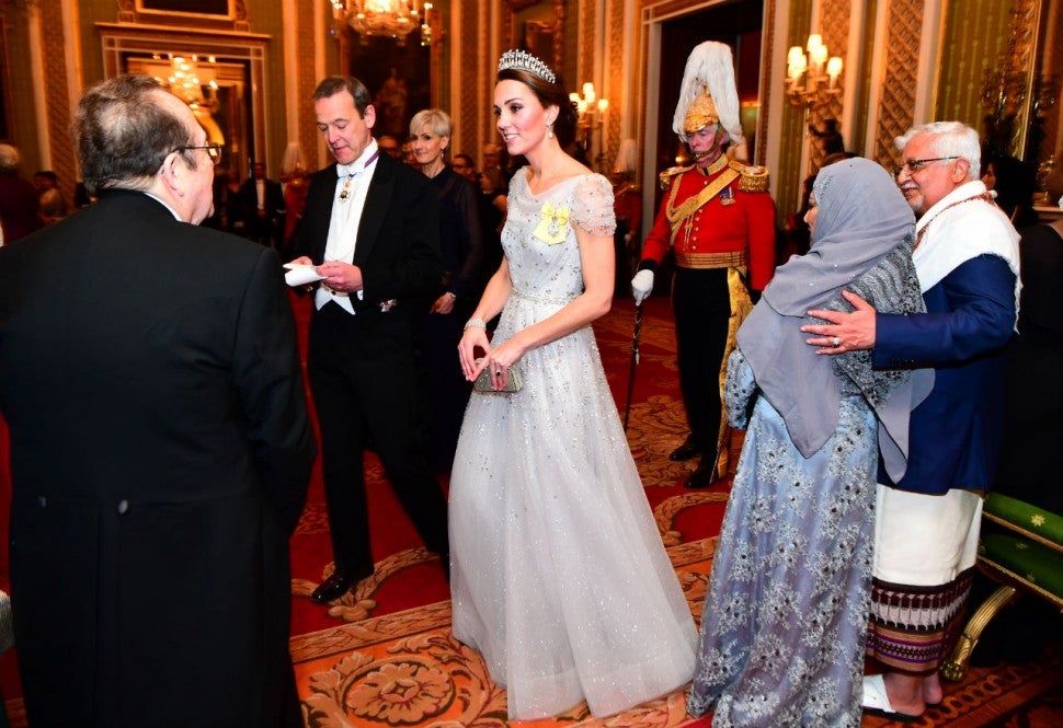 Kate Middleton clearly adores the Lover’s Knot tiara that once belonged to her husband Prince William's late mother, Princess Diana. The Duchess of Cambridge has sported the eye-catching headdress on several official occasions, most recently in October at a state banquet. On Tuesday, she once again donned the piece during an evening reception for members of the Diplomatic Corps held at Buckingham Palace. The mother of three had her hair swept back in an elegant up 'do for the occasion and paired the tiara with drop pearl earrings and a bespoke silver embellished Jenny Packham gown.