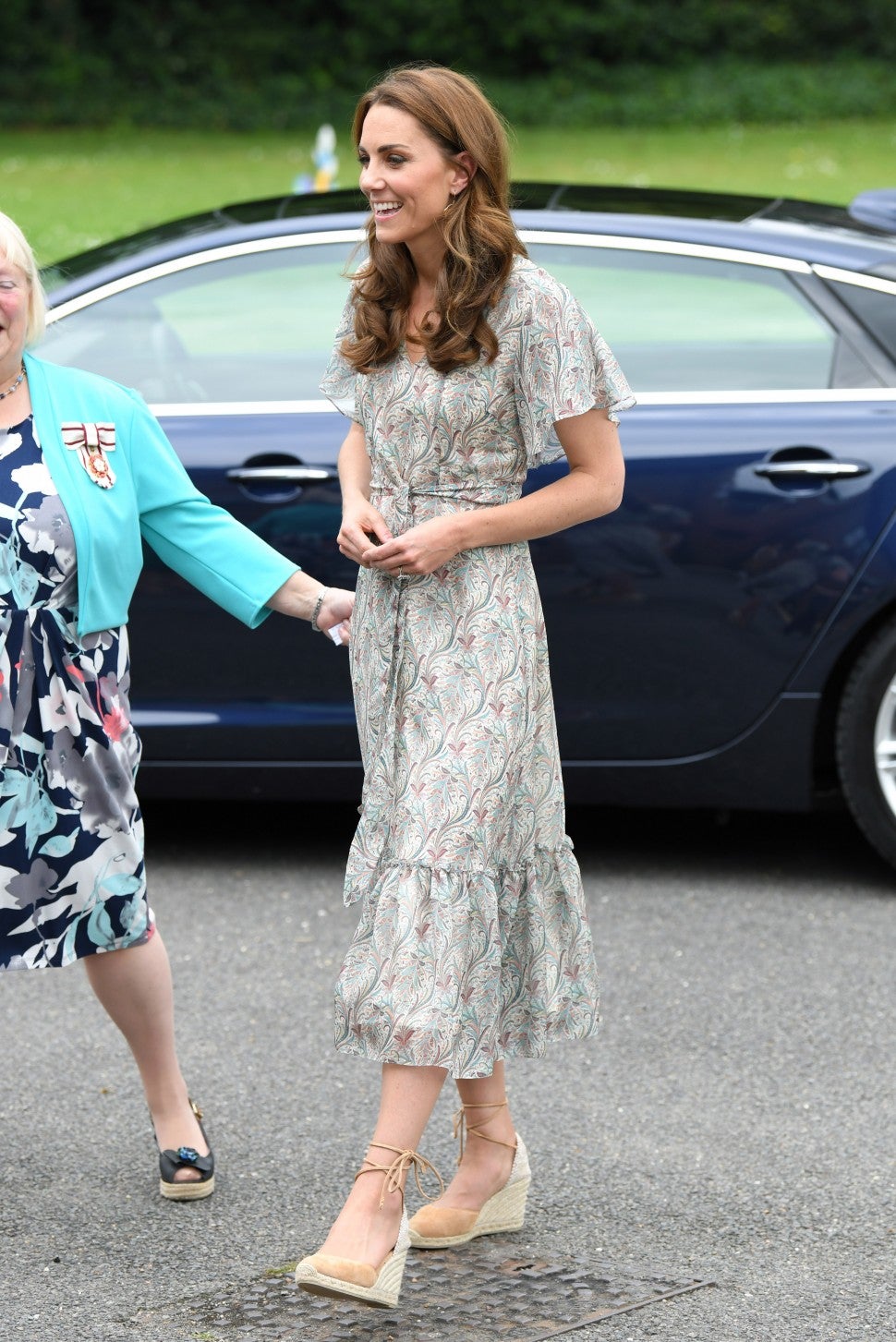 The duchess' dress and shoes are perfect for warm weather and never goes out of style.