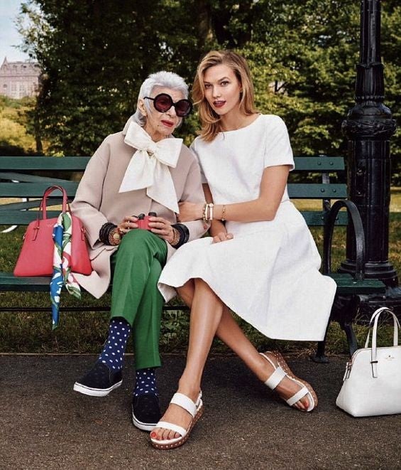 2015: Introduces furniture to the lineup. Fashion darling Iris Apfel, 93 at the time, models with Karlie Kloss in the spring campaign.