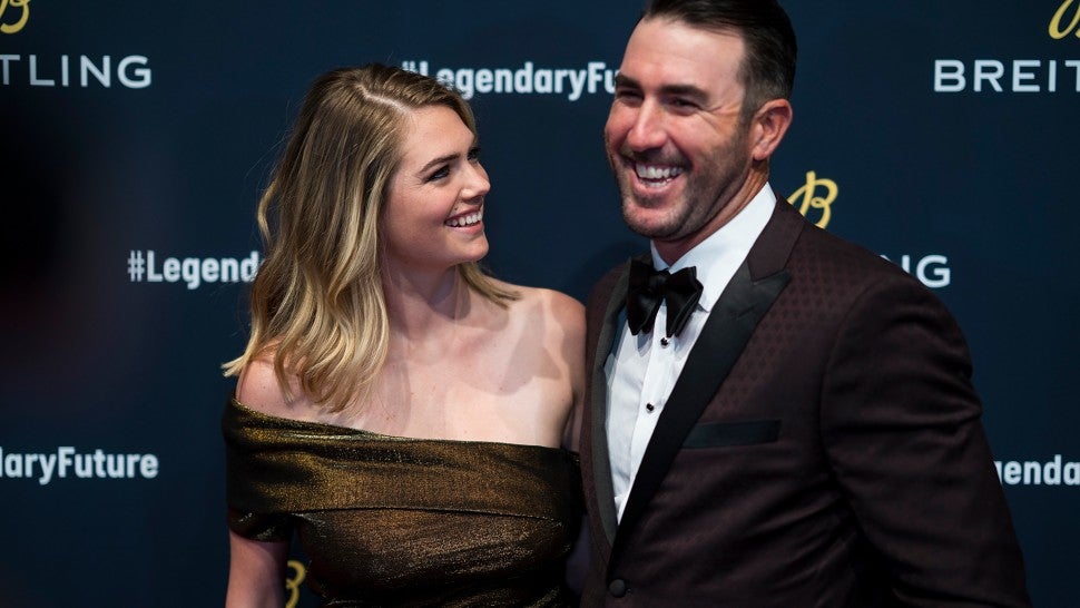 The Sports Illustrated model is expecting her first child with husband Justin Verlander, she revealed on Instagram on Saturday. Upton shared a stylish snap of herself posing in a fierce red suit on a sunny balcony, with just a hint of a baby bump visible beneath her jacket. Upton and Verlander tied the knot in Italy last November, just days after he helped the Houston Astros win their first-ever World Series.
