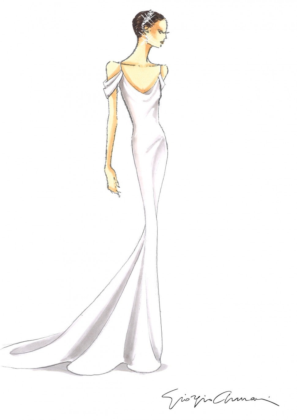 Get the scoop on the bride's wedding gown and reception dress, custom designed by Giorgio Armani.
