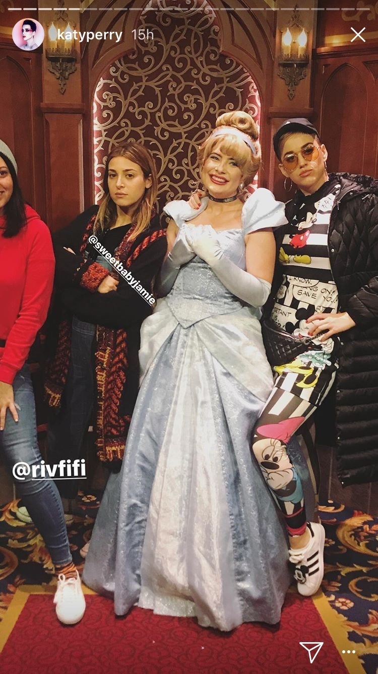 Katy Perry hit the Anaheim, California, theme park for a day of fun with Mickey Mouse, Snow White and pals on Monday.