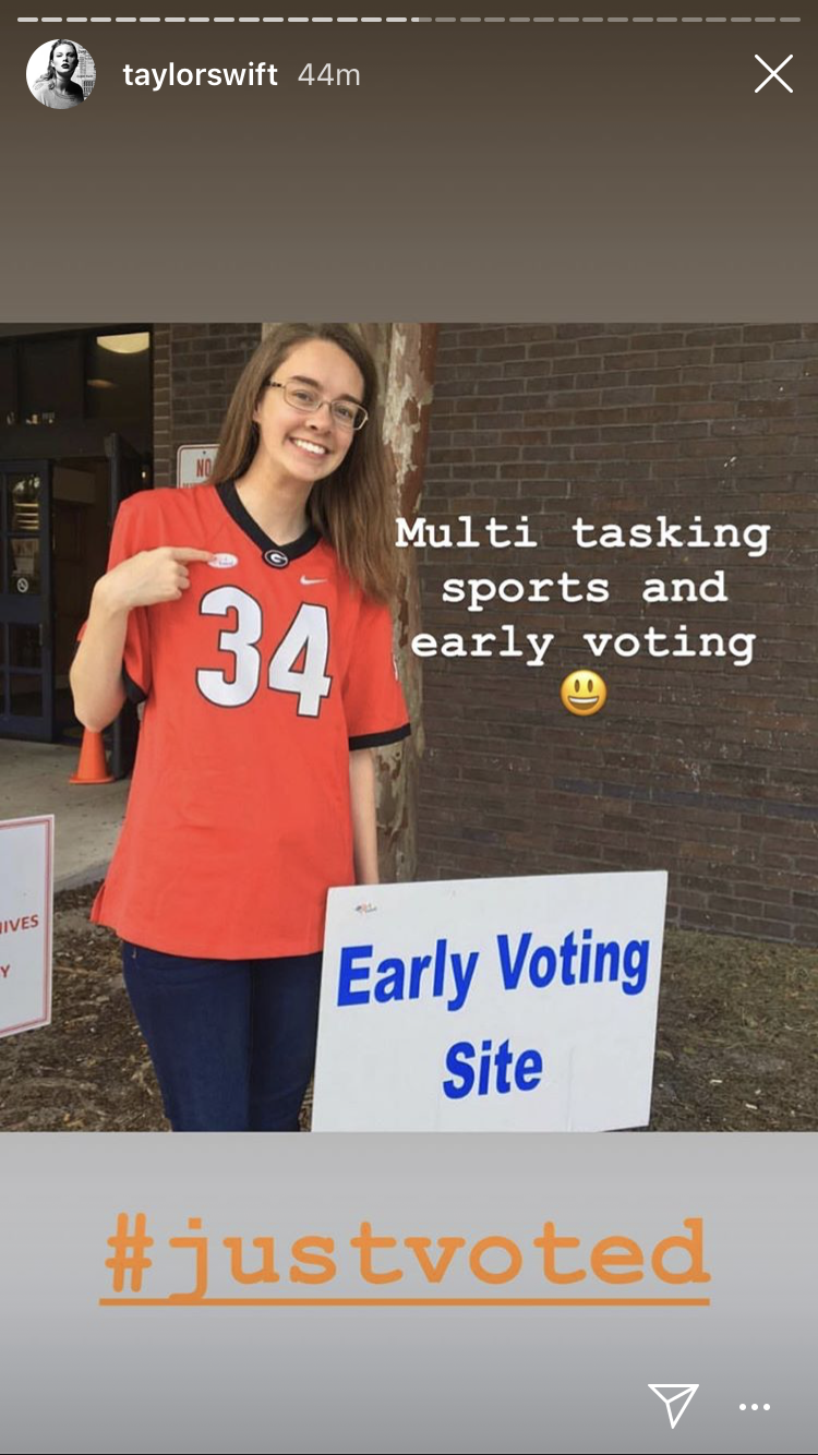 On Friday, Swift continued her praise for early voting, encouraging her fans to take pics and tag her after they voted.