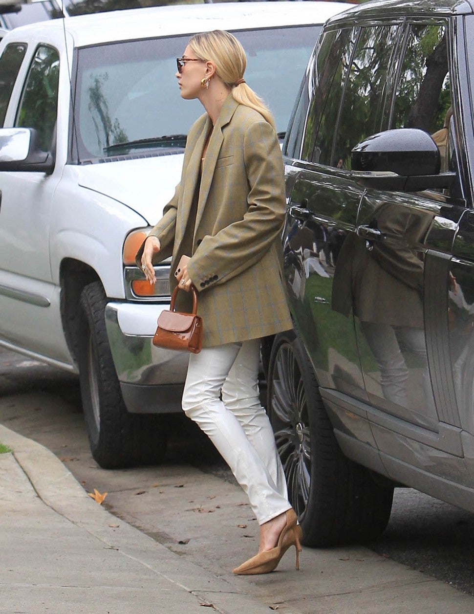 Hailey Bieber totes around the Mini top handle bag -- one of the most recognizable and popular styles from the accessory brand.