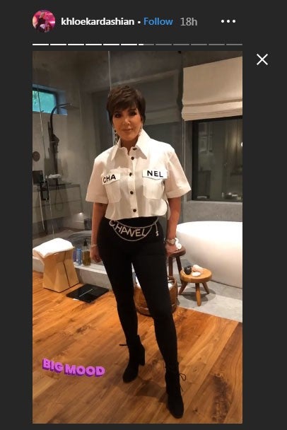 The 34-year-old reality star was also feeling mom Kris Jenner's head-to-toe Chanel look, calling it a "mood."