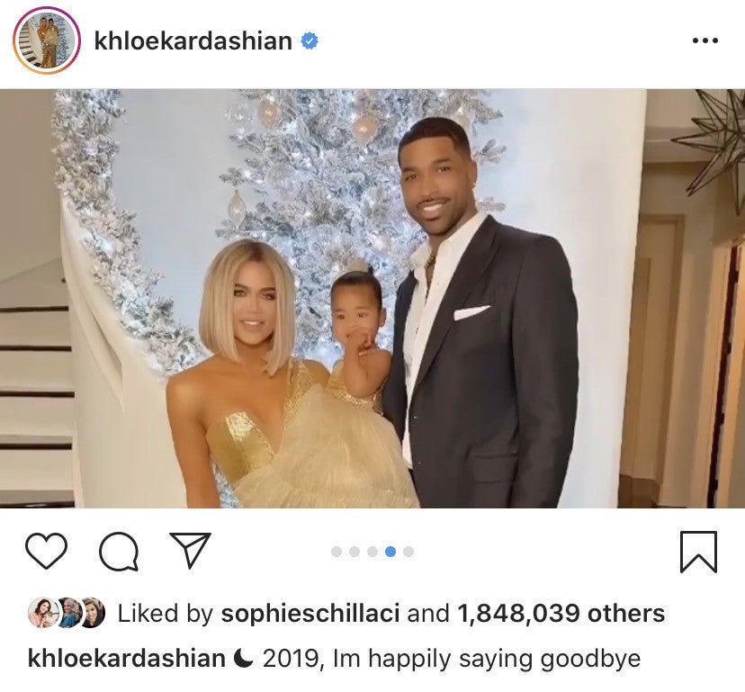 In a lengthy year-end recap video, Khloe shared a family photo of herself with True and Tristan, posing in front of a white Christmas tree ahead of her family's annual Christmas Eve bash.
