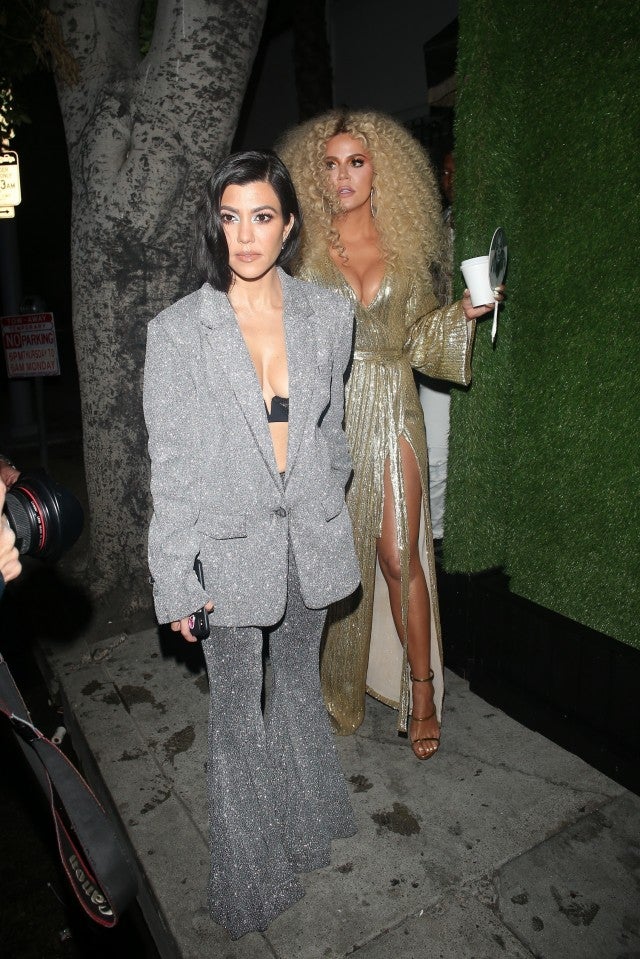 The newly single mom was spotted at the Warwick in Hollywood on Tuesday night with her mother, Kris Jenner, and her sister Kourtney Kardashian for the star-studded 75th birthday party for Diana Ross, which was followed by a special concert at the Hollywood Palladium. While Kris dazzled in a green sequined gown and Kourtney sported a suit-like look that exposed her black bra, all eyes were on Khloe, who appeared to be paying homage to the "I'm Coming Out" singer with her getup.