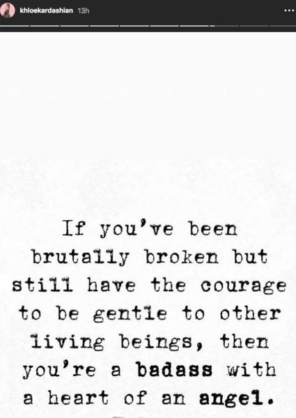 She also shared this serious message about showing kindness to others on her Instagram Stories on Wednesday: "If you've been brutally broken but still have the courage to be gentle to other living beings, then you're a badass with a heart of an angel."