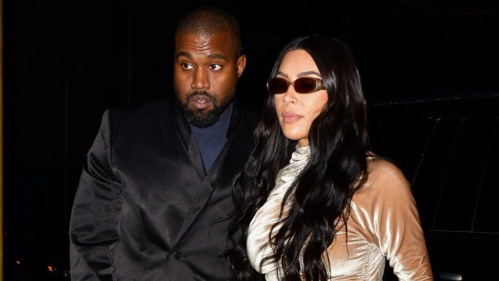 Kim Kardashian's family went for bold avant garde looks with Kim in an off-the-should gown with pink print and brown snakeskin details. Kanye West and his sons Saint, 4, and Psalm, 7 months, wore velvet looks and North, 6, rocked a pale pink suit and tiny pigtail buns.