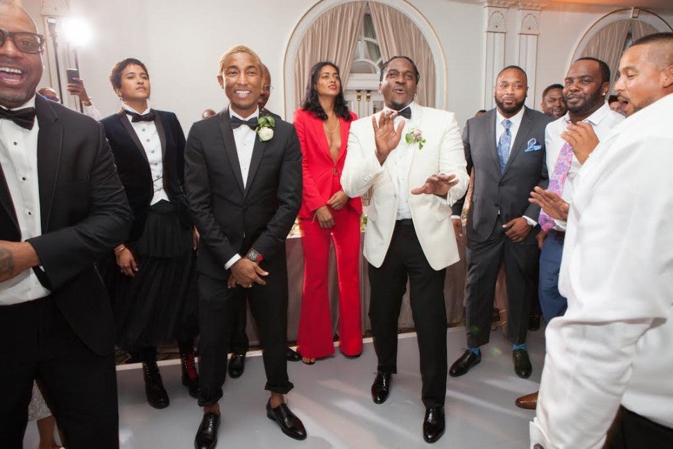 Pusha married his longtime girlfriend Virginia Williams at the Cavalier Hotel in Virginia Beach. And the aforementioned reality star and her husband were hardly the only famous faces in attendance -- Pharrell was the best man in the ceremony. The newlyweds shared amazing wedding photos with Brides, including Pharrell looking dapper and Kim and Kanye having a seat ahead of the ceremony.