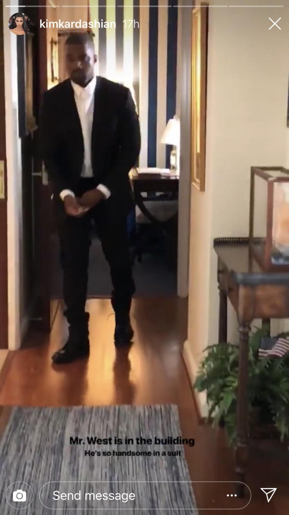 Meanwhile, the 41-year-old rapper sported a black suit and buttoned-up white shirt underneath, minus any tie. “Mr. West is in the building,” Kim wrote over the Instagram Story. “He’s so handsome in a suit.”