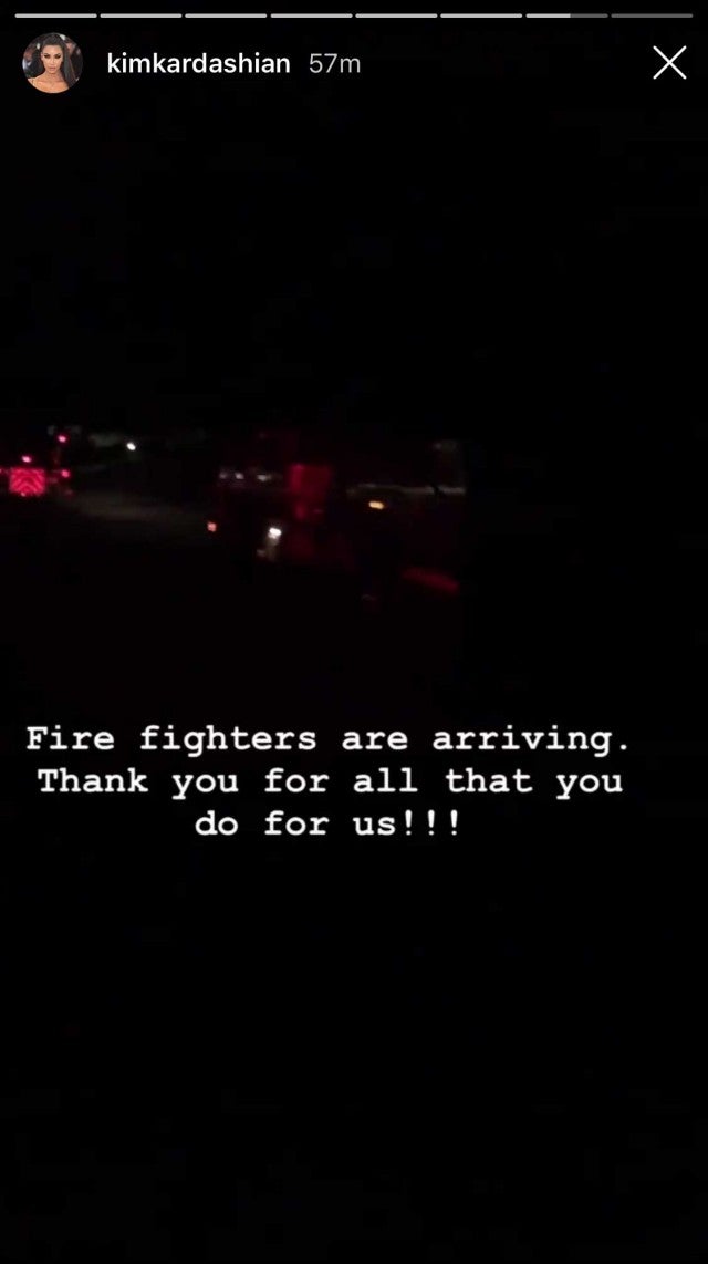 Kardashian also shared a video of several fire trucks driving down her street, and made sure to share her appreciation for their efforts.