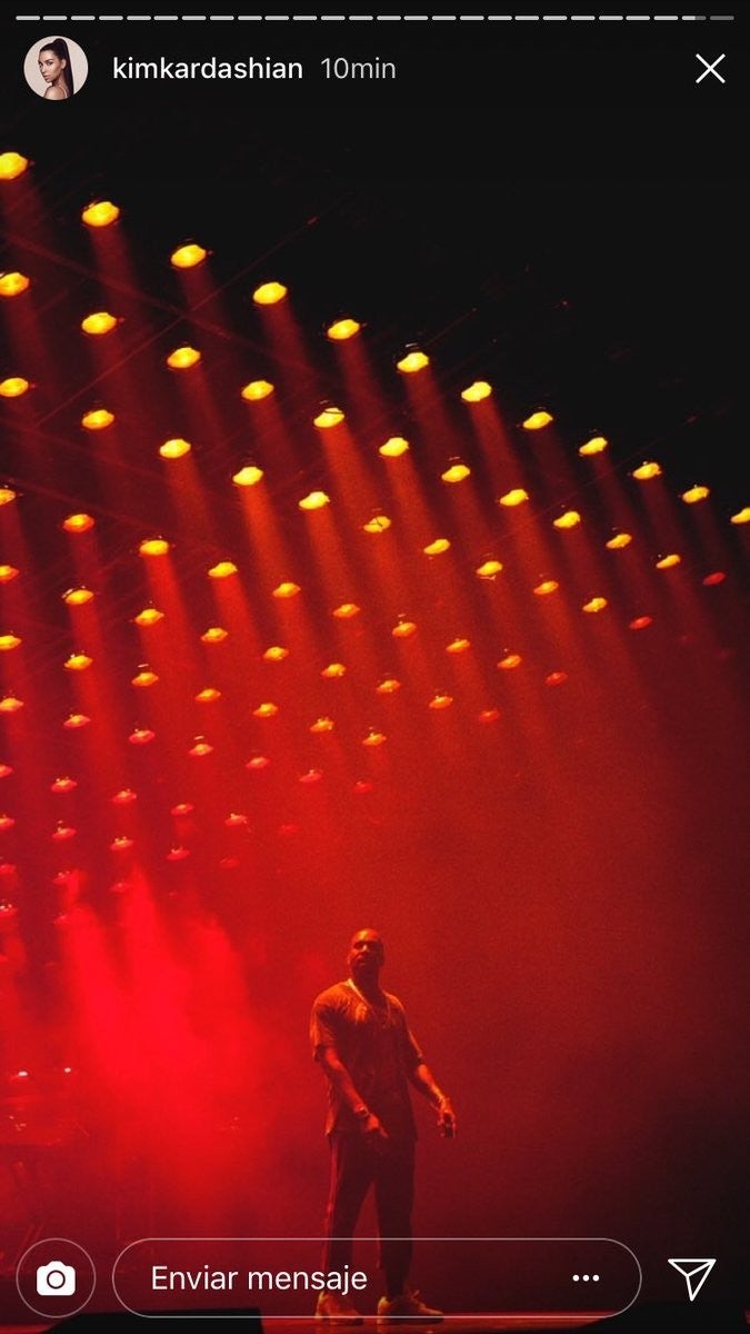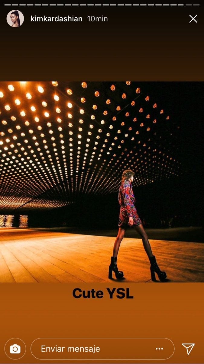 In a screenshot of the YSL catwalk, which showed circular orange ceiling lights, the 37-year-old Keeping Up With the Kardashians star playfully wrote, "Cute YSL," without any explanation. Though, her next snap was of her hubby onstage during his Saint Pablo tour with the exact same lighting.