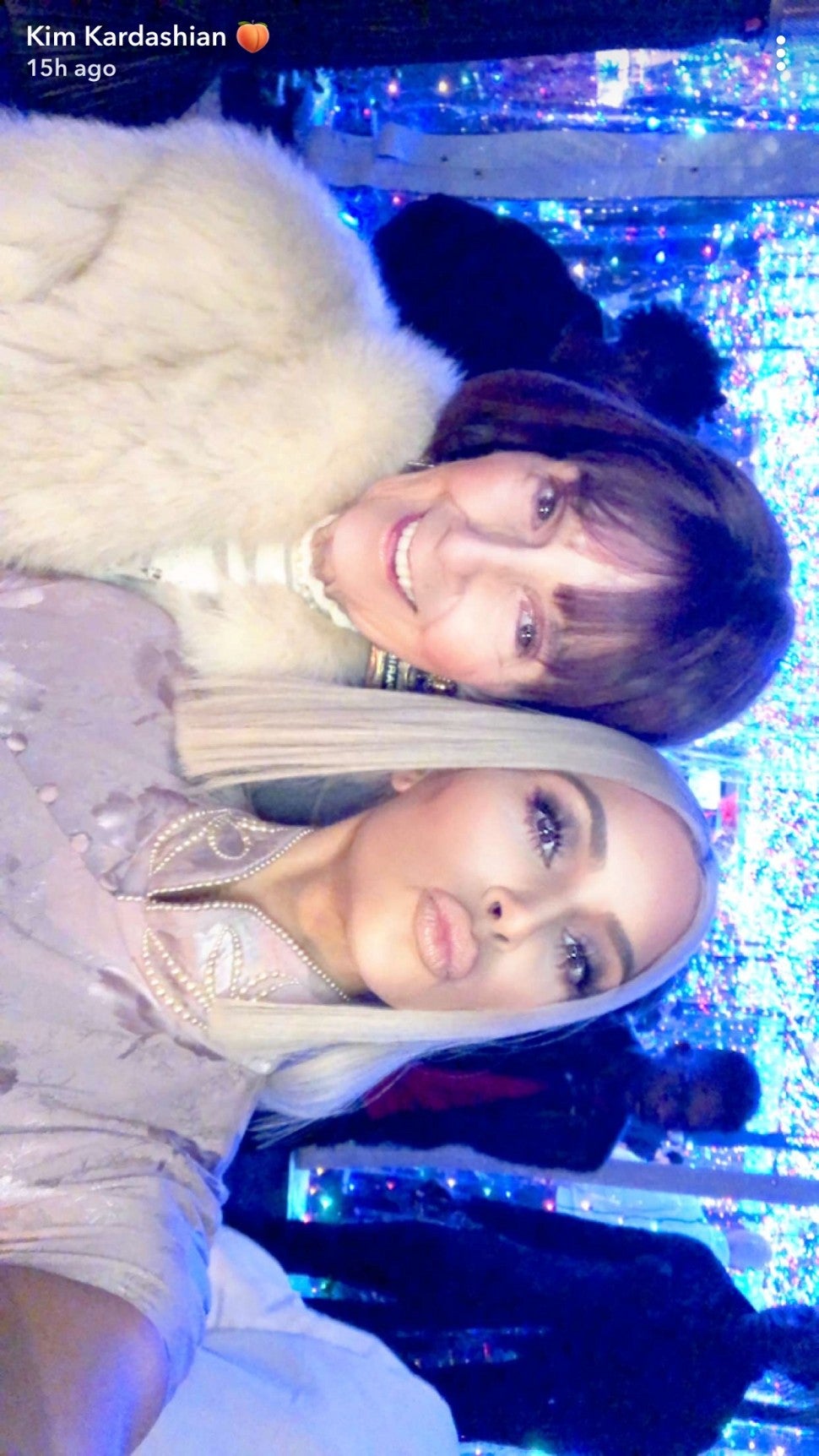 Khloe posed for selfies with her mama, Kris Jenner. "How gorgeous does my mom look?" the pregnant 33-year-old reality star asked as Kim slipped into the frame. "Well, Kim always looks gorg. How gorgeous is KJ?"