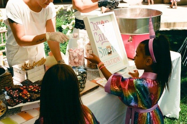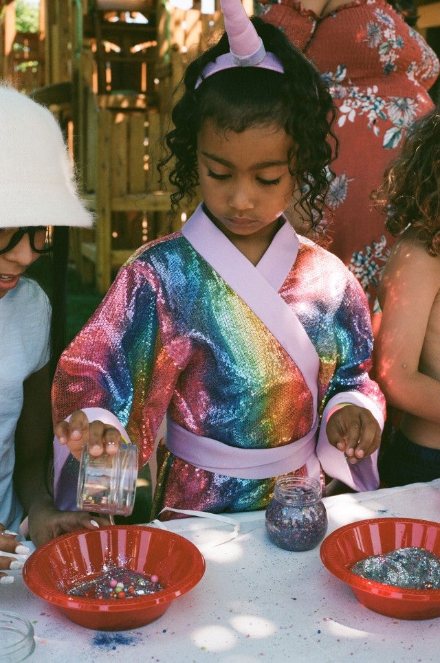 "North and Penelope have been really into unicorns, so when we threw them their joint birthday party, we knew that had to be the theme!" Kim writes on her app. "We had ponies with unicorn horns, a cotton candy and s’mores station, a 'unicorn snot' glitter slime craft station and music by DJ Livia - she’s only 10 years old and she was so good!"