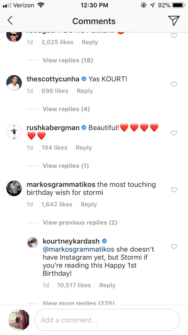 It didn't take long for Kardashian to hilariously clap back. “She doesn’t have Instagram yet, but Stormi if you’re reading this Happy 1st Birthday!” she wrote.