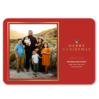 Send a cherished photo of your family to the ones you love with this stylish card. Written in metallic foil, your family's names and holiday message, can sparkle in either gold, rose gold, or iridescent foils.