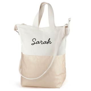 This versatile monogramed tote is great for those on the go. You can easily fit everything in it you, whether it's for a full day of errands or a nice little getaway.