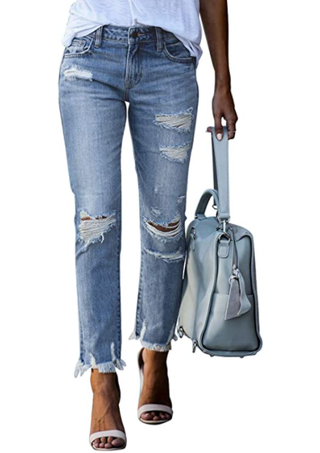 "These are very flattering and very comfortable. Because I wear jeans so much I tried to find [ones] that actually feel like sweatpants," Richards says of these ripped skinny jeans.