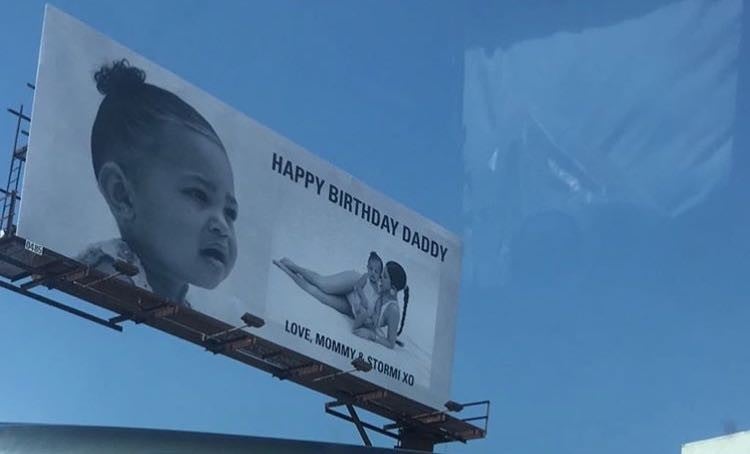 "Happy Birthday Daddy!" reads the billboard, which features a close-up black-and-white shot of Travis and Kylie's 1-year-old daughter, Stormi, as well as a photo of Kylie posing with the baby girl. The mother-daughter duo sports matching white one-pieces in the pic as they cuddle up against a crisp white background. "Love, Mommy & Stormi XO," Kylie added.