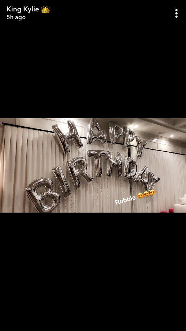 Rob Kardashian mixed things up a bit with massive silver balloons that read, “Happy Birthday.”