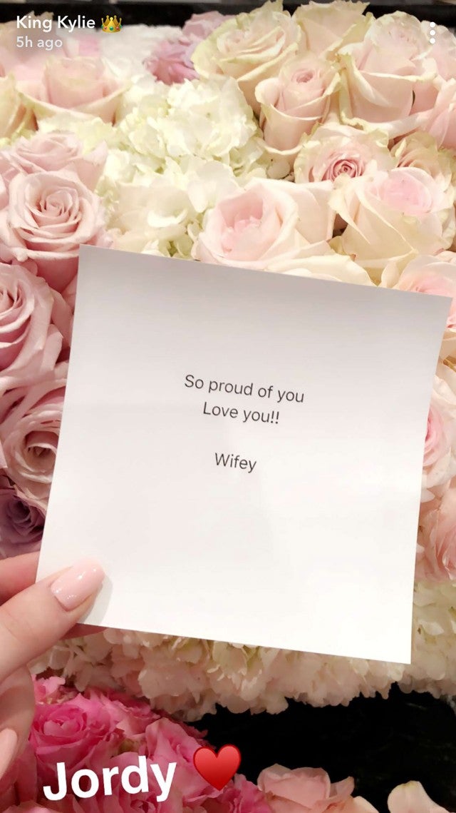 Kylie’s bestie, Jordyn Woods, also left a note with her flowers, writing, “So proud of you. Love you!! Wifey.”