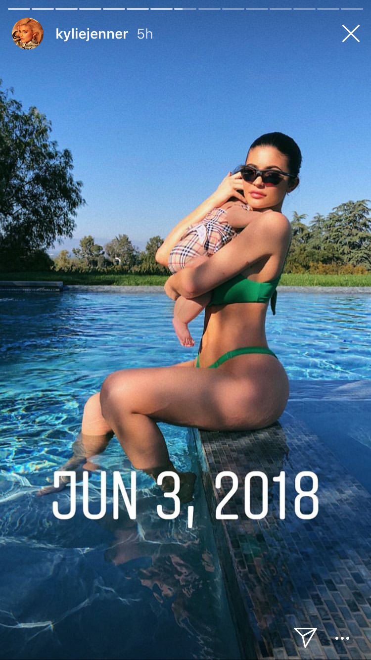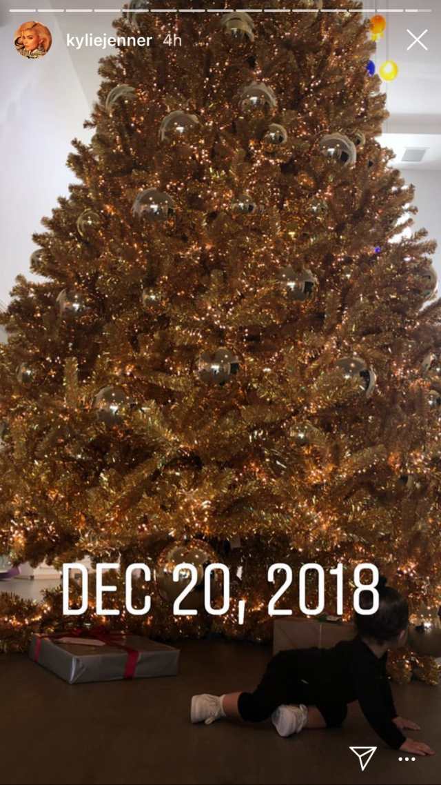 Another new photo was one dated June 3, showing Jenner sporting a green bikini while holding baby Stormi in a pool. The next day also brought a new pic, this time with the mother-daughter duo enjoying a sweet hike together. And the last shot in Jenner's collection was more recent, dated Dec. 20, and featuring Stormi in front of a massive gold Christmas tree.
