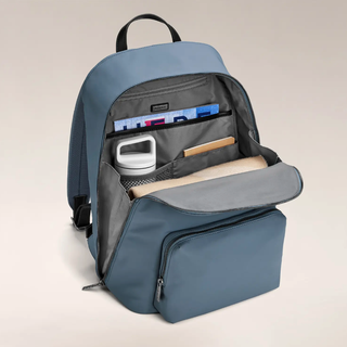 Made with water-resistant nylon, Away's backpack includes a spacious front zipper pocket for even more storage on the go. Its interior features a padded 15" laptop pocket with a magnetic locking zipper for security.