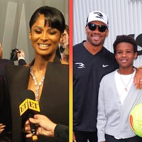 Ciara and Russell Wilson chat with ET's Denny Directo at 'Vanity Fair's Oscar Party on Sunday in Los Angeles.