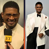 Usher chats with ET's Denny Directo at 'Vanity Fair's annual Oscars party.