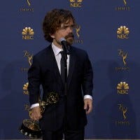 Peter Dinklage speaks backstage after winning for Supporting Actor in a Drama Series at the 2018 Emmy Awards.