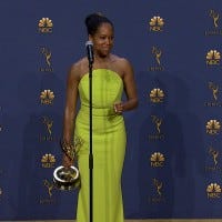 Regina King speaks backstage after winning for Lead Actress in a Limited Series or a Movie at the 2018 Emmy Awards.