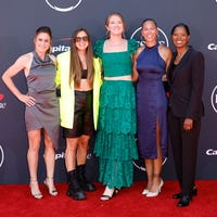 Megan Rapinoe’s partner, Sue Bird, chats with ET's Nischelle Turner backstage at the 2023 ESPY Awards in Los Angeles.