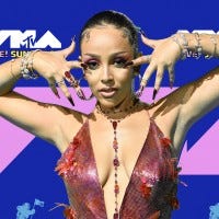 ET speaks with Doja Cat about hosting and performing at this year’s VMAs, which airs on Sept. 12 on MTV.