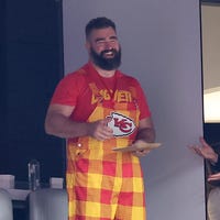 The Philadelphia Eagles great is all in on sporting Chiefs gear for Super Bowl LVIII.