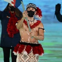 A new shirtless flag bearer made an impression at the opening ceremony.