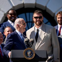Taylor Swift's boyfriend and his teammates visited the White House to commemorate the Kansas city Chief's Super Bowl victory.
