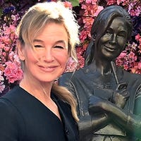 Renée Zellweger unveils her Bridget Jones statue in the UK to celebrate her iconic movie role.