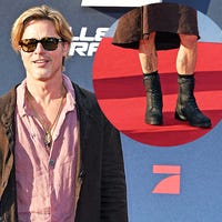 Brad Pitt rocks a knee-length skirt on the red carpet at the premiere of ‘Bullet Train’ in Berlin, Germany.