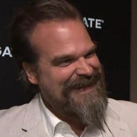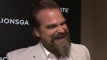 ET spoke with Harbour on the red carpet for Lionsgate at CinemaCon in Las Vegas, where he also dished on his 'Hellboy' transformation.