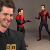 ET chats with Andrew Garfield about the backstory to the 'Spider-man' trio's meme pic at the 28th annual SAG awards.