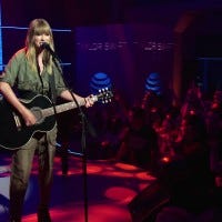 The 28-year-old musician plays an acoustic version of 'Shake It Off' to an intimate crowd in Chicago.