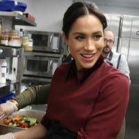 The Duke and Duchess of Sussex and the 'Hello' singer visited the Hubb Community Kitchen on Thursday.